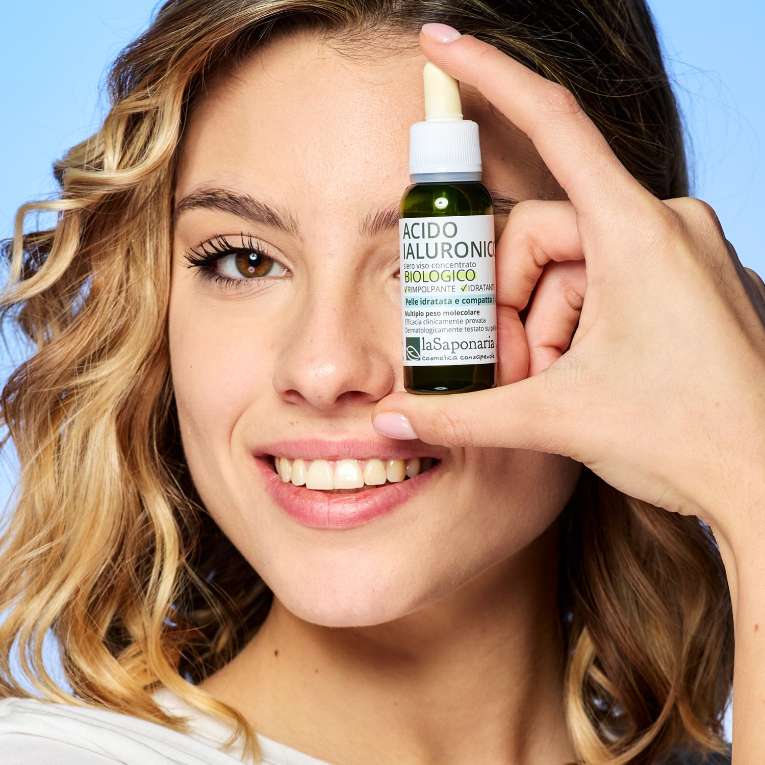 Acido Ialuronico - multiplo peso molecolare - Siero viso concentrato biologico rimpolpante e idratante Attivo puro
