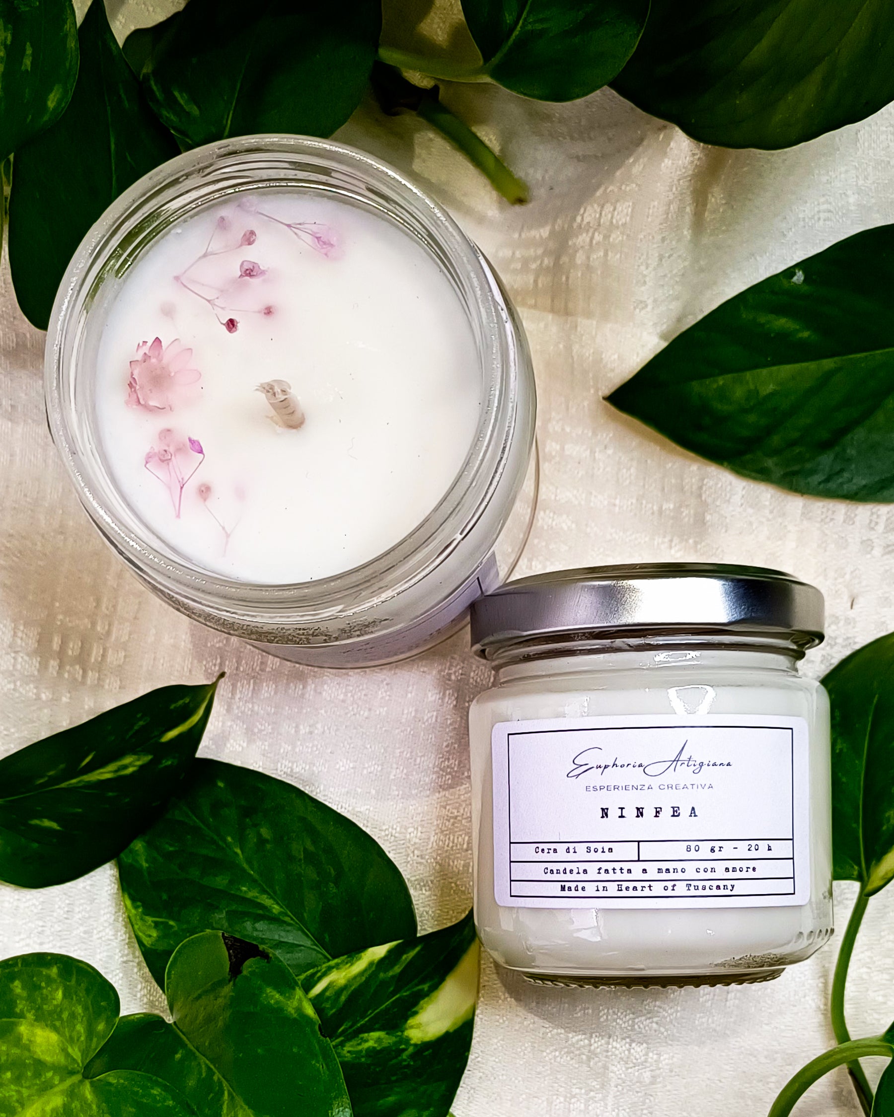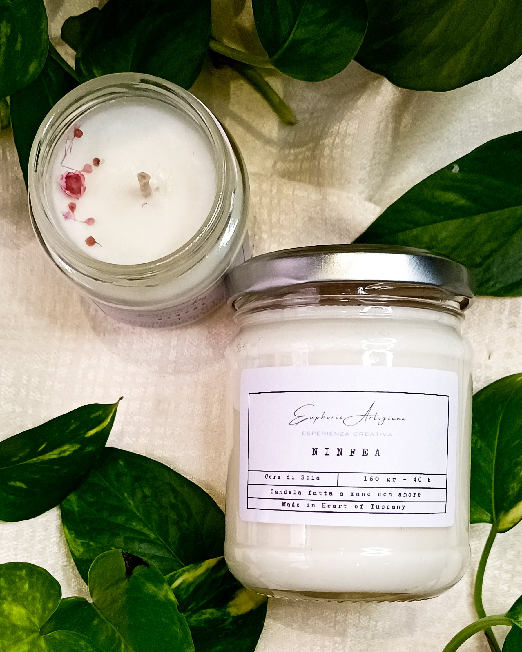 Ninfea is made with high quality raw materials. Soy wax helps the scented candle burn slowly and release the fragrance gently.