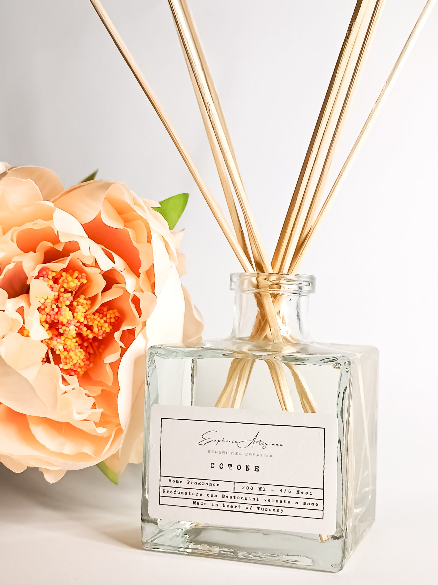 Cotone, a strong and intense fragrance, with a lively amber base combined with woody and floral tones.