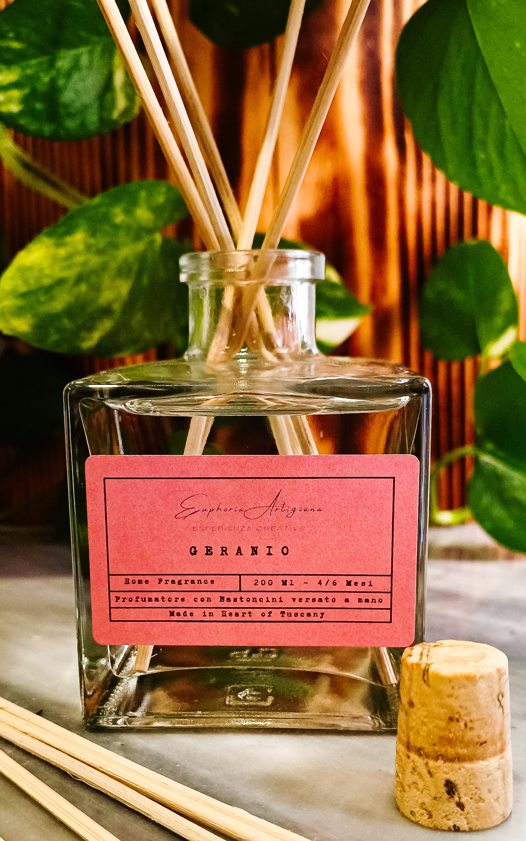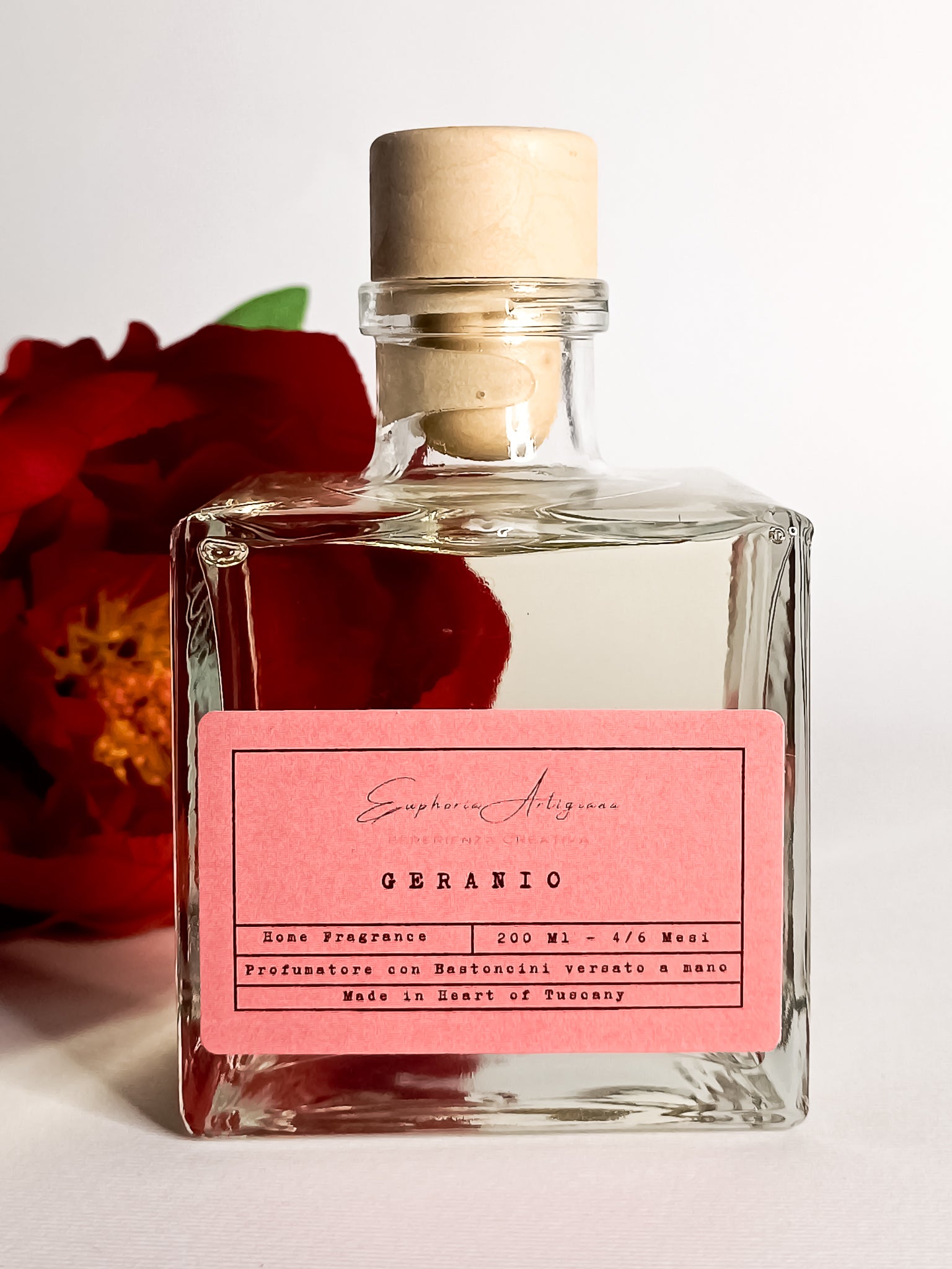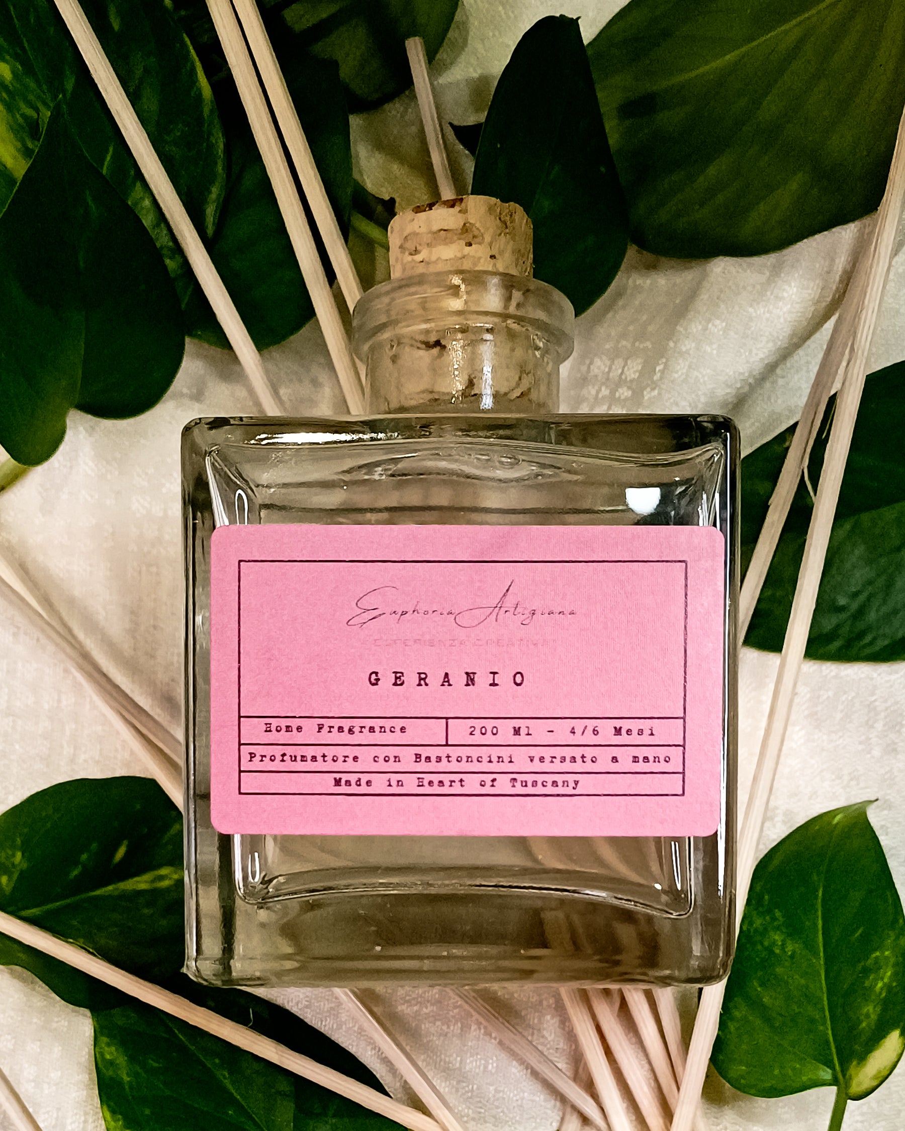 Désodorisant avec GERANIO Sticks, versé à la main avec amour.