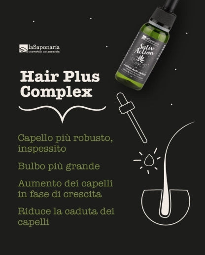 Un concentrato di attivi dall’efficacia stupefacente per contrastare la caduta dei capelli: i prebiotici di cicoria sono utili per rinforzare il naturale microbiota cutaneo e creare un ambiente favorevole alla salute dei capelli, mentre l’estratto di canapa, insieme a taurina e il dipeptide citrullinil-arginina contenuti nell’estratto di alga chondrus, rinforzano e migliorano il tasso di crescita dei capelli. Gli effetti sono potenziati dall’esclusivo Hair Plus Complex, un fitocomplesso vegetale che contrasta la caduta dei capelli e offre risultati visibili già dopo 3 mesi!